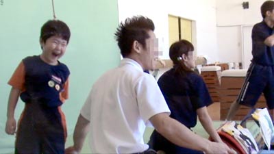UMコーチも苦笑い。 Sも危機感無くテレ笑い。 |