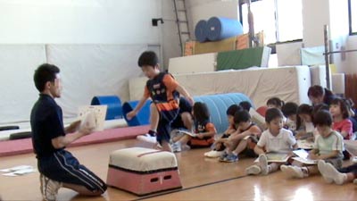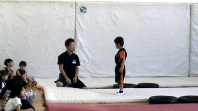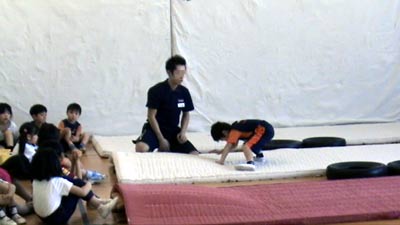 ただ1人補助のタオルを用いるも、 足で蹴り上げる感覚は掴めなかった。 |