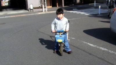 時々ペダルが地面に擦って止まってしまうが、 加減も覚えていくしかない。 |