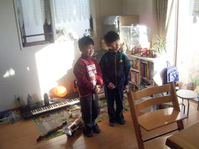 そしてSもまた諒君直君に絡んで遊べるようになっていた。 また諒君もS得意のロボット・イントネーション言葉を 真似したりと、どこかSを見る目が温かい。 |