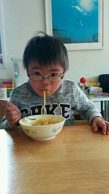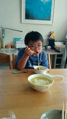 秘技、一本麺。 食欲もある。 鼻だけだな。 |