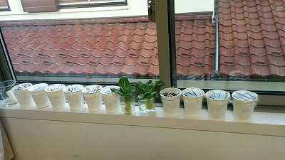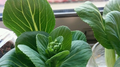 チンゲンサイの芯から再生を試みたが、トウ立ちしてしまった。 |