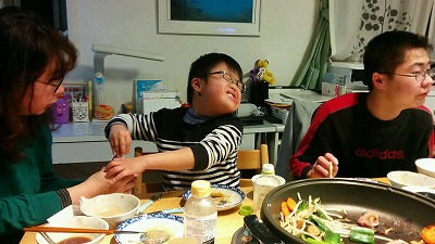 焼き肉はいつも、 それ焼くな!生で食わせろ!! と、大好物の刺身との違いがわからず大泣きするH。 |