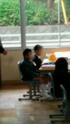 交流の、普通級の席。 とりあえず大丈夫そうだ。 分かれて式の体育館に向かう。 |