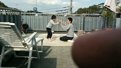 モゾモゾ動いていたが、ちゃんと座ってられたH。 |