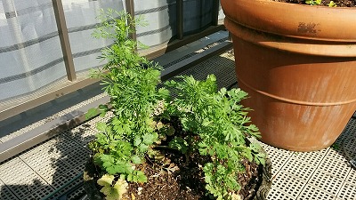 パクチーが一年草なんて、ウソだ。 大雪にもメゲず、勢いづいてきたぞ。 |
