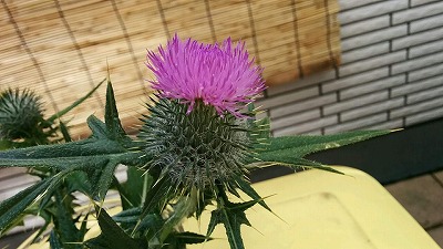 アザミが咲いた。 スゲー痛えぜ、コイツ。 |