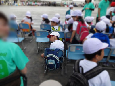 Hを席にリリース。 普通級だ。 支援級の高学年の子たちが付き添ってくれる。 |