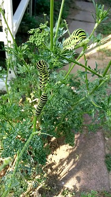 庭のアゲハ。 S用にパセリを育てた。 |