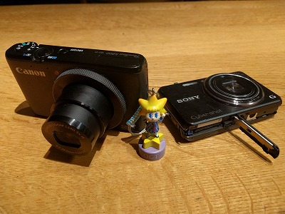 左のS200はレンズエラーで意識不明。 右のWX100は、仕事の大先輩から頂いたもの。 でも内臓が飛び出してしまう。 |