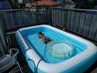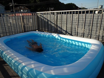 H、家につくなりプール!プール!と。