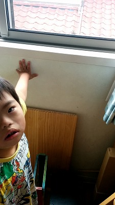 窓を気にしている。