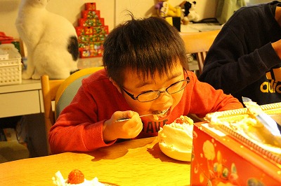 スポンジなどドーでもいい、生クリームをカッさらうH。 |