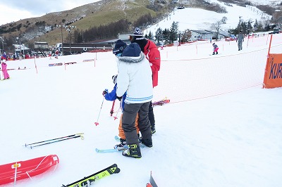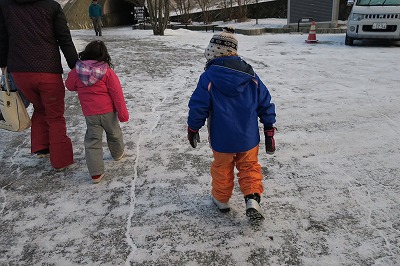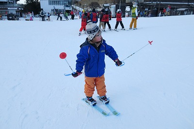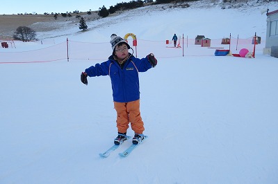 だから、お友達から借りたスキー、履いてみようよ〜・・・。