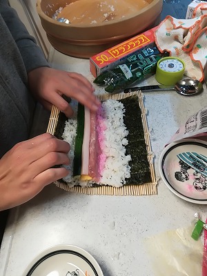 Sがどうしても恵方巻にこだわったと、お母さんとSで、覚えている覚えてないの論争に・・・。
