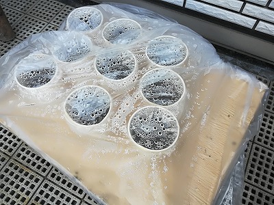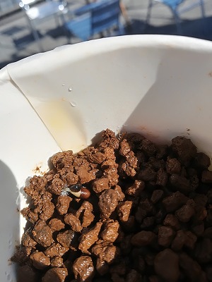 紙コップ+ラップで屋外放置は、クリスマスローズの種。 |