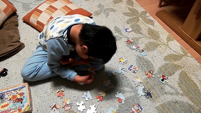 H、1人寝になってから、寝る前の絵本はリビングで。