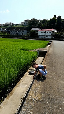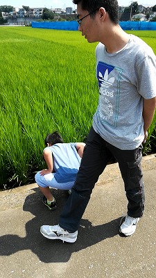 途中、田んぼに寄りたいと、S。 |