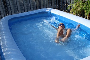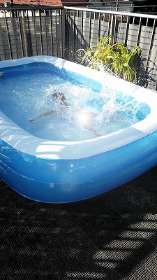 今季初自宅プール。 |