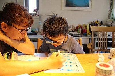 お母さんは日々の宿題を左目でやらせようと考えた。