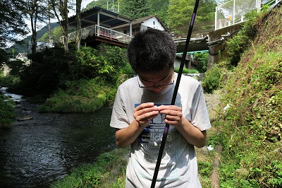 Sは初めて自分で餌(疑似餌だが)を付けた。
