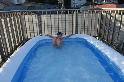 帰宅後もクールダウンのプール。 |