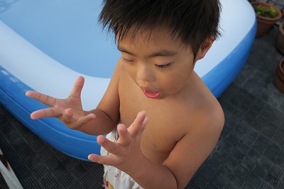 帰宅・即プール。 |
