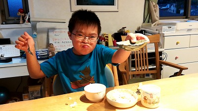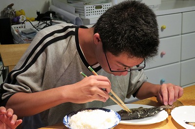 魚の焼きは、Sが自ら。
