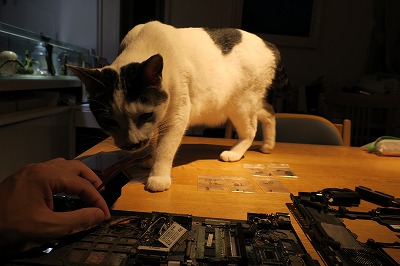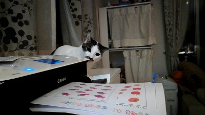印刷物を狙うメイ。 |