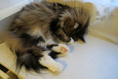 顔を覆って眠るCoo。 |