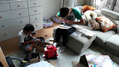 お母さんはインドアの整理。