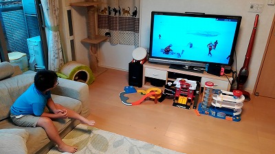 ゲームに喰らいつくH。 |