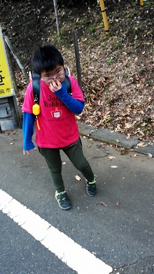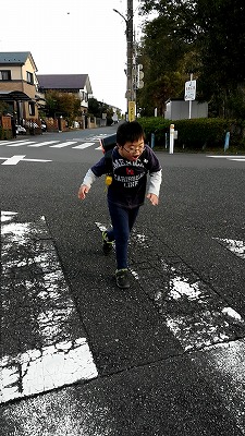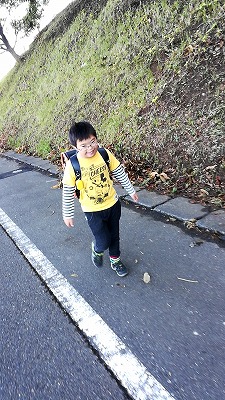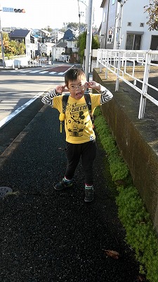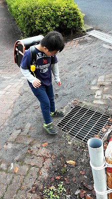 排水溝の水の流れに捕らわれのH。 これでは一人登校など夢の夢。 イカンわ。 |