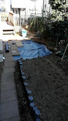 防草シートを敷いて・・・。 |