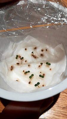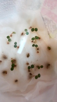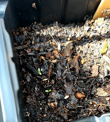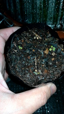 使い古しの土なので、目的の種からの芽かわからんが。 |