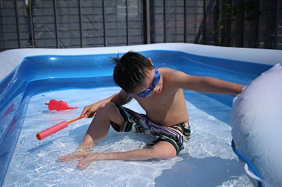 陽はあるが、水は冷たい。 これくらいならヘッチャラなH。 |