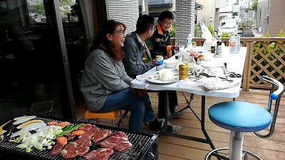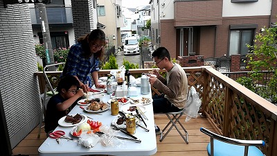 ベランダバーべQ。 火起こしもまた、楽しい。 |