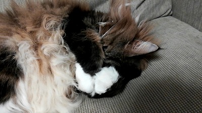 眩しいのか、顔を覆って眠るCoo。 |