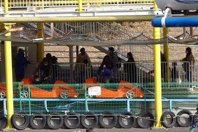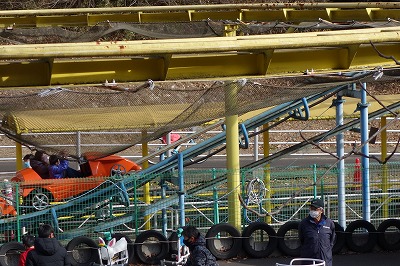 と思ったら、このまま右に切りすぎてレールに斜めに接触、動けなくなる。
