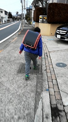 天気が悪かったので、先にSも車で送ってから、Hを学校に。