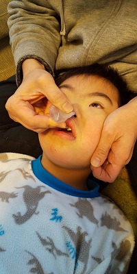 ![]() | 点鼻その1の写真撮影。 デイサービスさんに見せるのだ。 もう、穴に垂らせば自分で吸ってくれる。 |