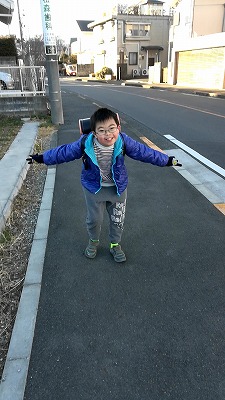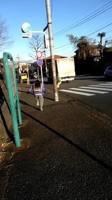朝歩けなかったので、夕方迎え歩き。 |