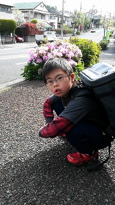 トミカのリュック背負って。 |