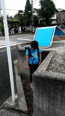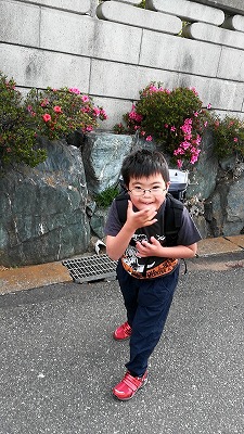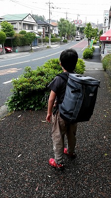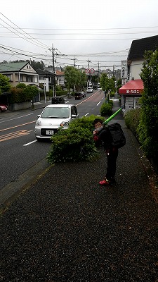 雨なので車送り。 傘、危ないぞ。 |