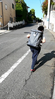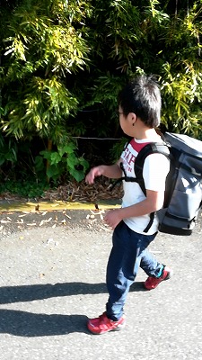 朝歩き。 私を待たず、先に歩き出すH。 |
