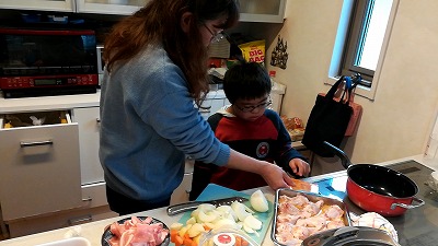 料理しながら、Hに学ばせも。 スゴイ手間だが。 |