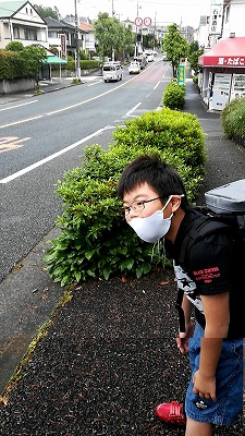 アララ、道の反対側に渡らねばならないのを、真っすぐ行ってしまった。 |