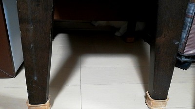 ビビッて机の下に潜り込んで、出てこない。 |