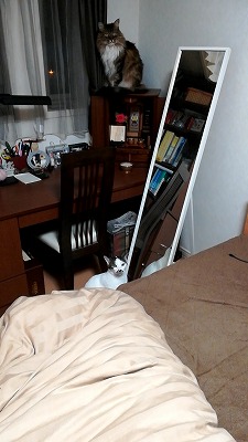 何と窓から逆走! 部屋の戸を閉めて立てこもってしまった。 |