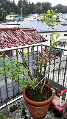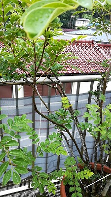 出てきた脇芽を幹に沿って上に立たせてみようという魂胆。